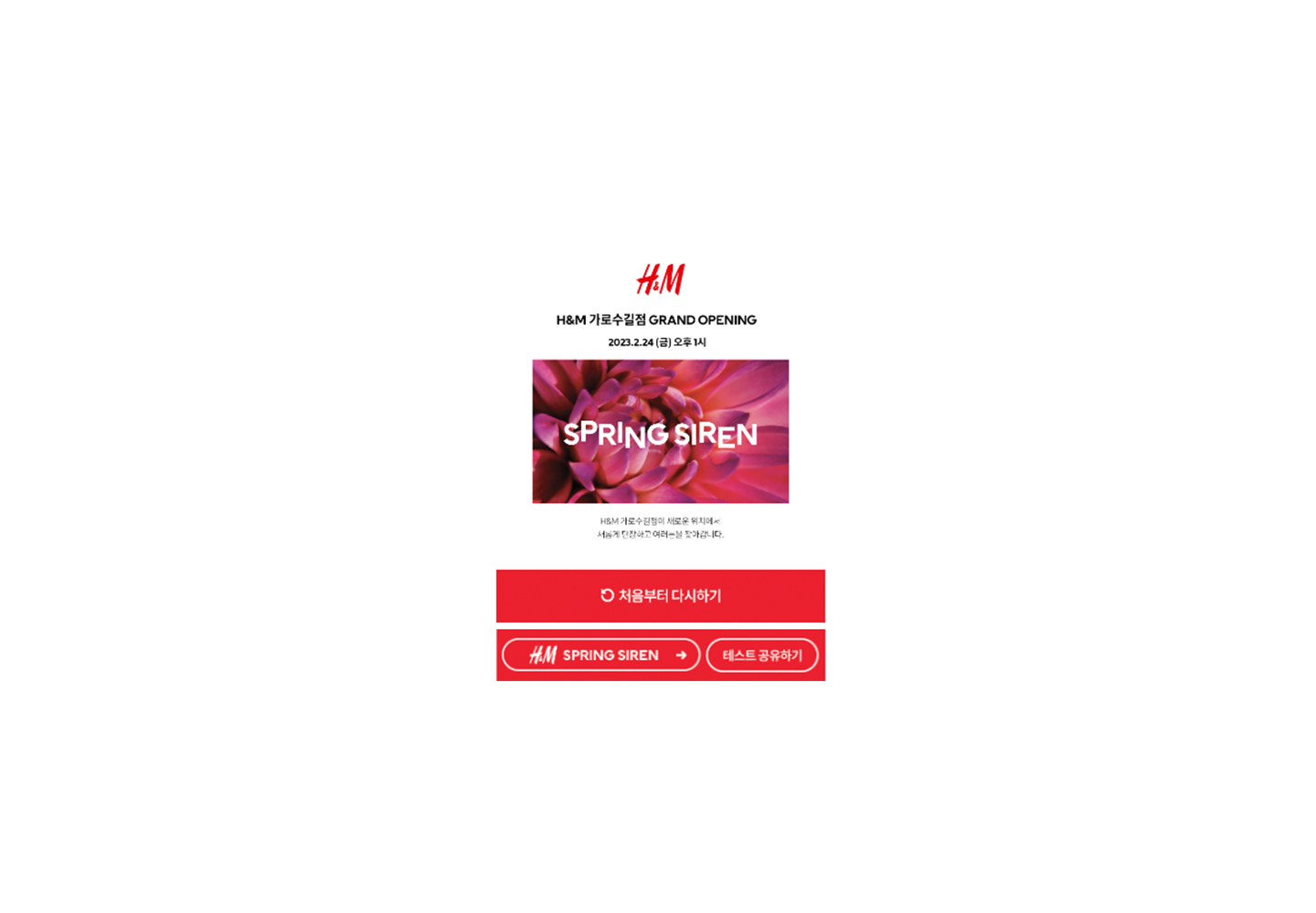 H&M 가로수길 매장 오픈 트래픽을 위한 바이럴 테스트를 기획/디자인/제작 하였습니다.